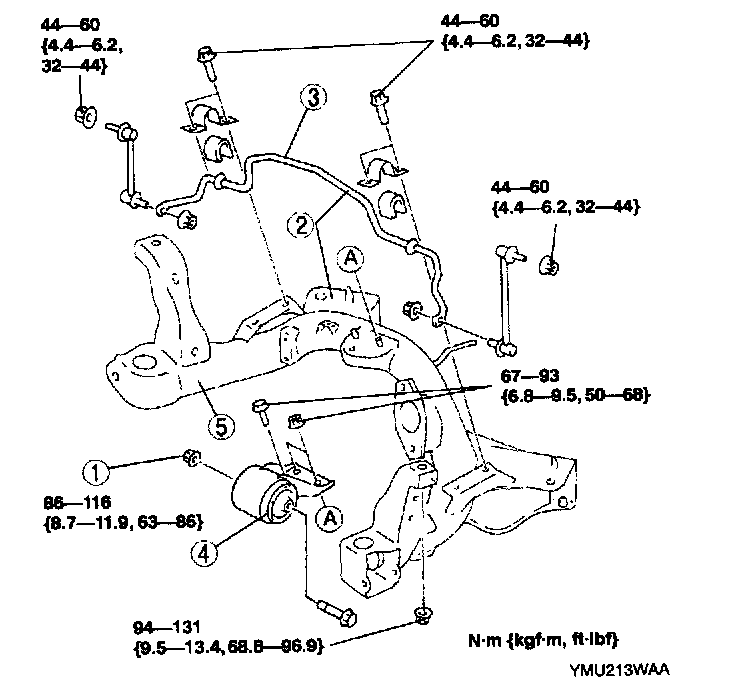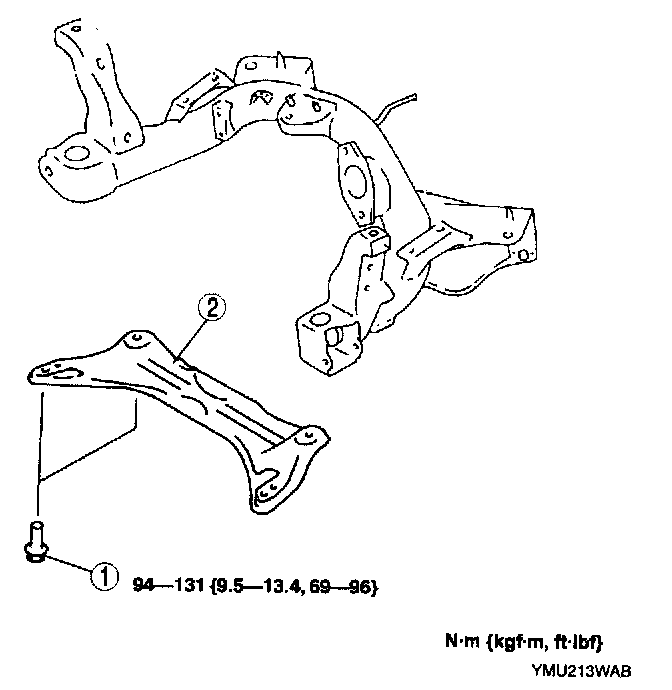 1. Support the crossmember using a jack and remove the bolts and nuts.