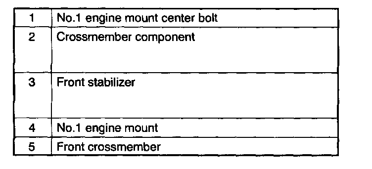 TRANSVERSE MEMBER REMOVAL/INSTALLATION1. Remove in the order indicated in the table.