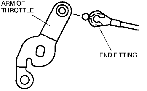 2. Remove the end fitting of the actuator cable from the arm of the throttle.