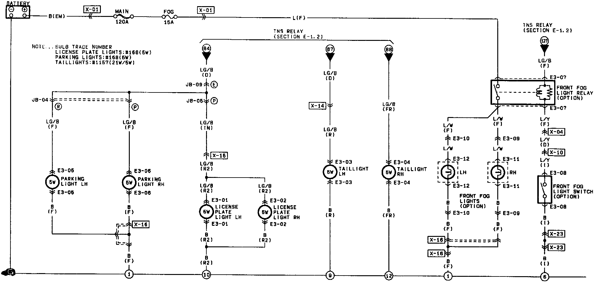 E-3 Front Fog Lights (Option)/License Plate Lights/Parking Lights/Tail lights: