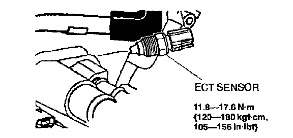 WARNING: When the engine is hot, it can badly burn. Turn off the engine and wait until it is cool before removing the ECT sensor.1. Drain the engine coolant (See COOLING SYSTEM SERVICE WARNINGS.) (See ENGINE COOLANT REPLACEMENT.)