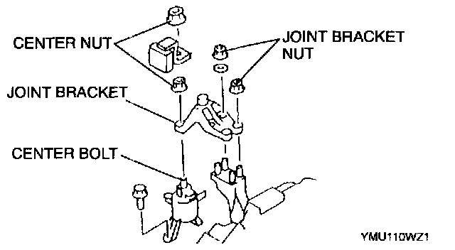 1. Remove the through bolt which mounts the No. 1 engine mount rubber and joint bracket. Do not remove the No.1 engine mount rubber from the vehicle.