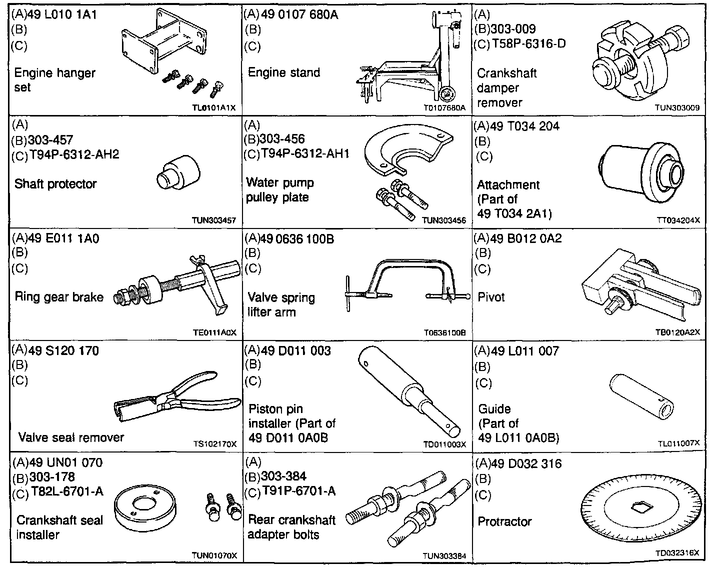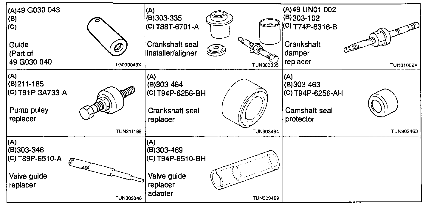 Ford SST and global tool numbers are collated with Mazda SST numbers if they are available in the example below.