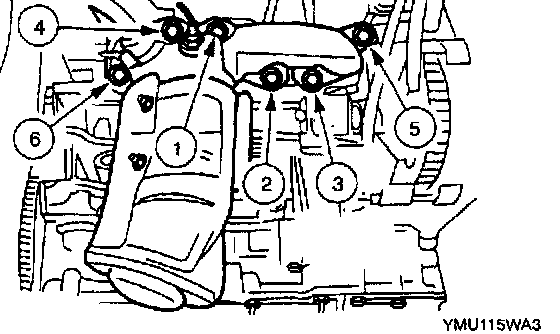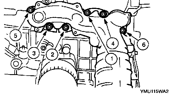 1. Tighten the exhaust manifold installation nuts in the order shown.