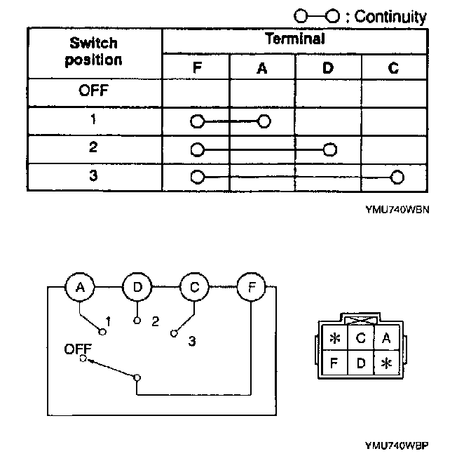 Inspect for continuity between the rear fan switch terminals using an ohmmeter.