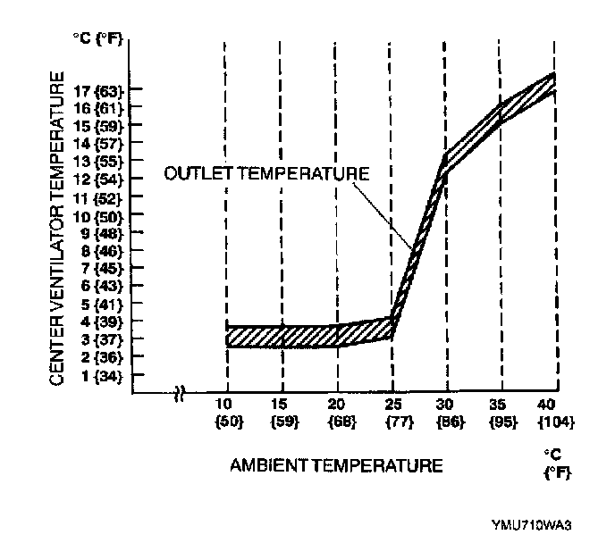 14. Verify that the intersection of the center ventilator temperature and the ambient temperature is in the shaded zone.