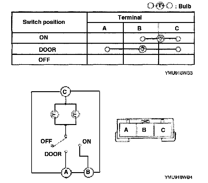 Inspect for continuity between the interior light terminals using an ohmmeter.