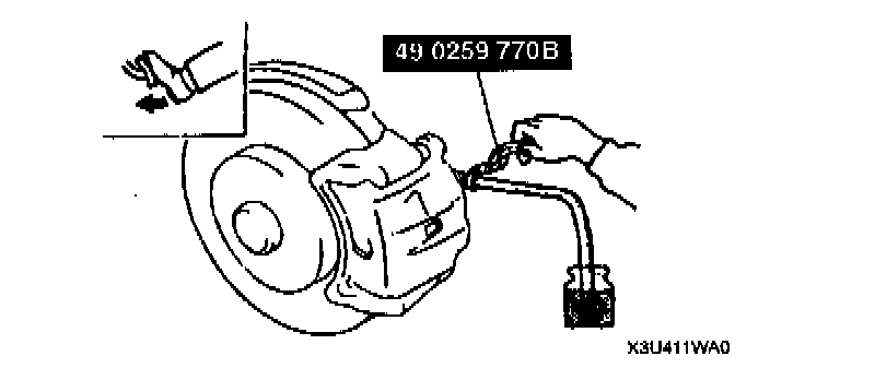AIR BLEEDINGNote The brakes should be bled whenever a brake line is disconnected. If a hydraulic line is disconnected at the master cylinder, start at the slave cylinder farthest from the brake master cylinder, and move to the next farthest slave cylinder until all four cylinders have been bled. If the disconnection point is anywhere except the master cylinder, start at the point closest to the disconnection, and move to the next closest slave cylinder until all four cylinders have been bled.