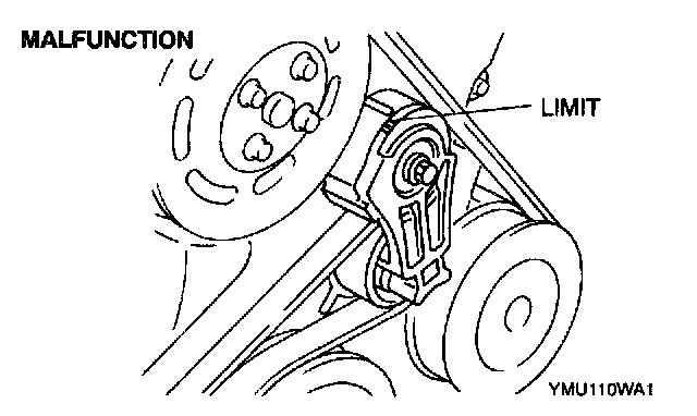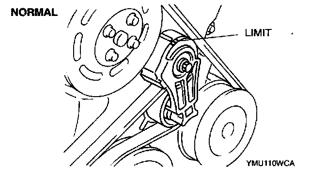 1. Verify that the drive belt auto tensioner indicator mark is not exceeding the limit.