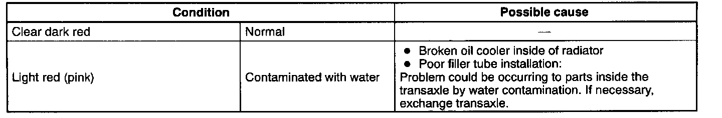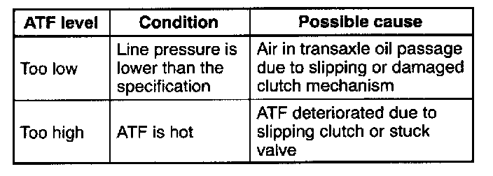 Note If the ATF level is too high or too low in hot condition, the following problems may be the cause.