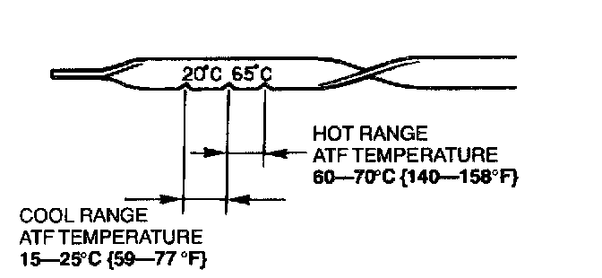 Note In some cases it may be necessary to inspect the ATF in the cool range 15 - 25° C (59 - 77° F) before warming up the engine.