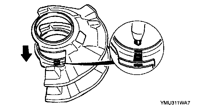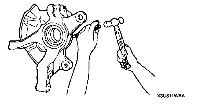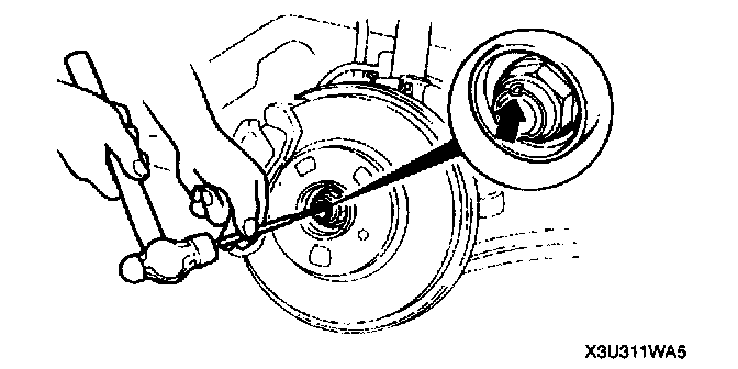 1. Knock the crimped portion of the locknut outward using a small chisel and a hammer.