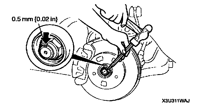 2. If the bearing inner race remains on the front wheel hub component, grind a section of the bearing inner race until approx. 0.5 mm (0.02 inch) remains. Then remove it using a chisel.