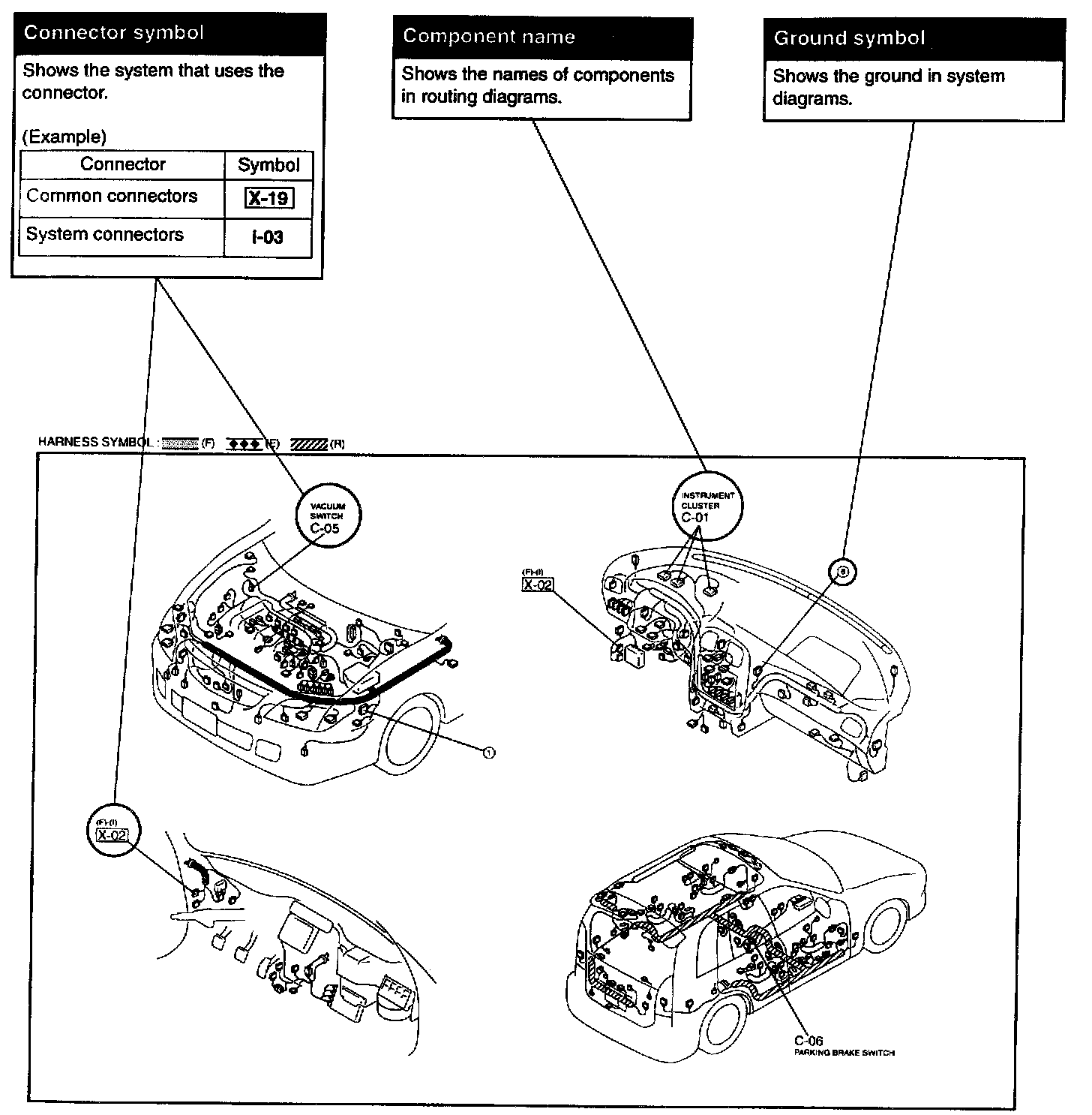 The routing diagram shows where electrical components are on the system circuit diagram by call out line and connector symbols.