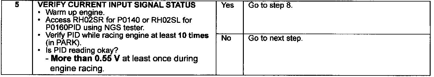 ^ If DTC P0140 or P0160 is present and Freeze Frame Data is not stored in memory, refer to the Workshop Manual (section 01-02A-94 DIAGNOSTIC PROCEDURE), and begin troubleshooting at STEP 5 instead of STEP 1.