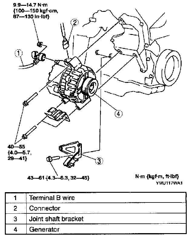 WARNING: When the battery cables are connected, touching the vehicle body with generator terminal B will generate sparks. This can cause personal injury, fire, and damage to the electrical components. Always disconnect the battery before performing the following operation.1. Disconnect the negative battery cable.