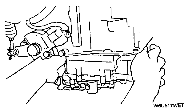 4. Apply a light coat of silicon sealant to the contact surfaces of the oil pan and transaxle case.