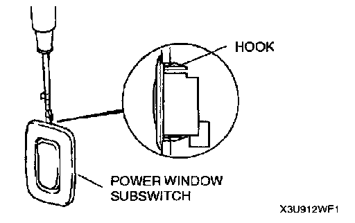 2. Remove the hook by inserting a tape-wrapped flathead screwdriver between the switch and the rear door trim.