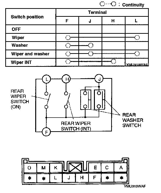 - If not as specified, replace the wiper and washer switch.