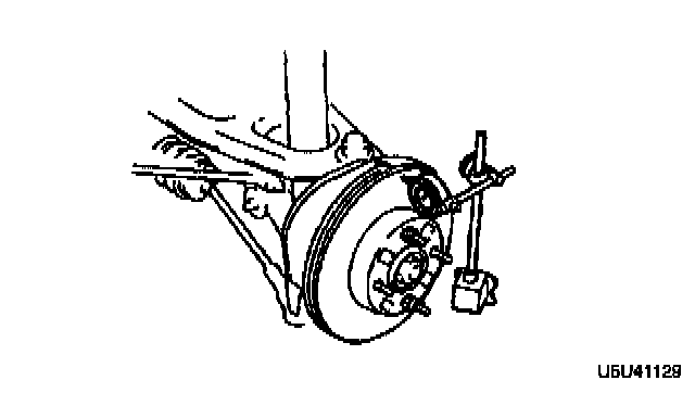 Disc Pad Thickness Inspection1. On level ground, jack up the front of the vehicle and support it with safety stands.