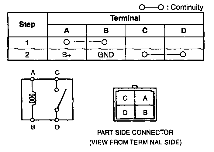 Inspect for continuity between the blower relay terminals using an ohmmeter.