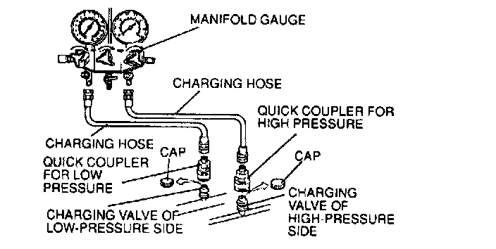 2. Connect the charging hoses to the high - and low - pressure side joints of the manifold gauge.