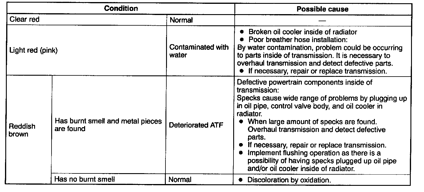 AUTOMATIC TRANSMISSION FLUID (ATF) INSPECTIONATF Condition Inspection