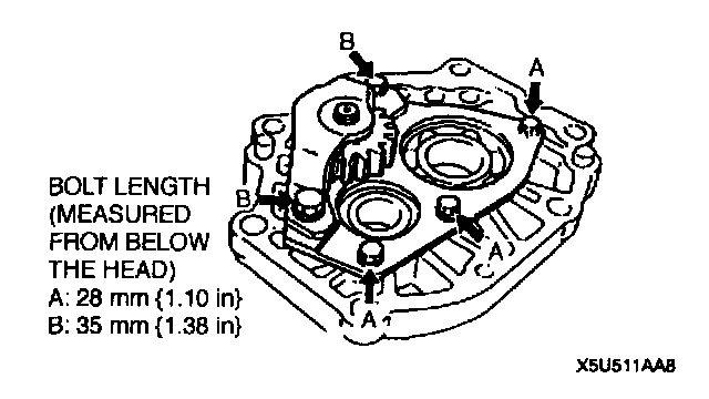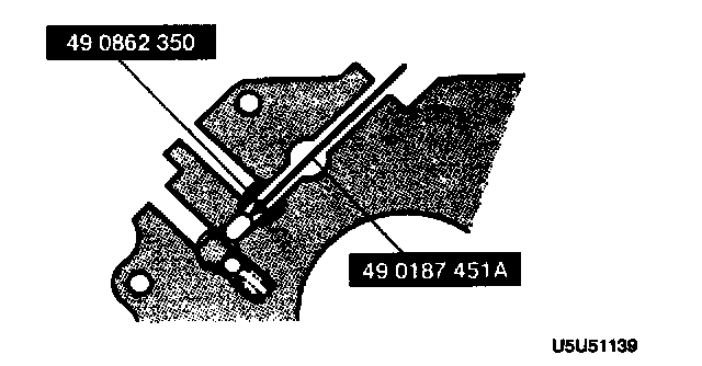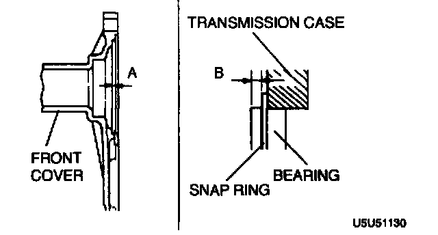 - After measuring dimensions A and B show in the figure, use the adjustment shim(s) of the thickness corresponding to the value of A minus B, so that bearing end play will be within the specification.