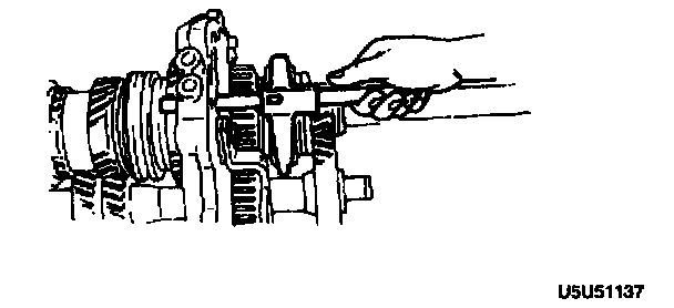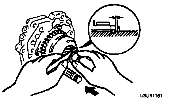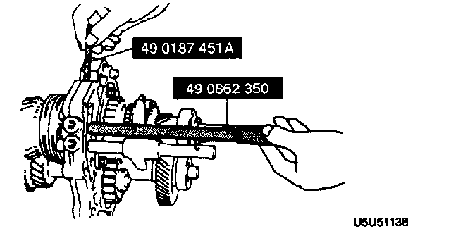 1. Position the SST between 2nd and 3rd gears, and hold the mainshaft from underneath.