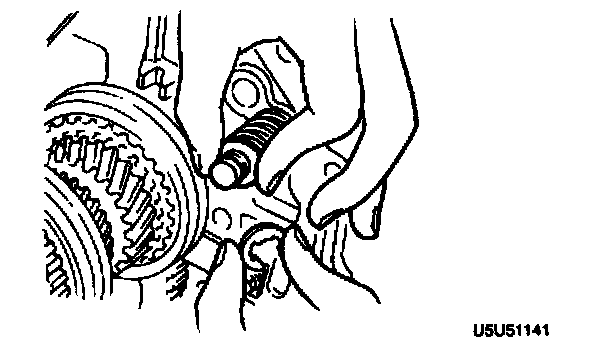 - Remove the clip and spring from the 5th/reverse shift rod.
