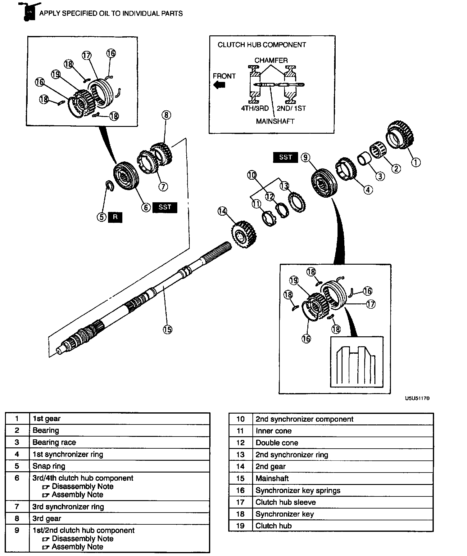 1st/2nd Clutch Hub Component Disassembly Note