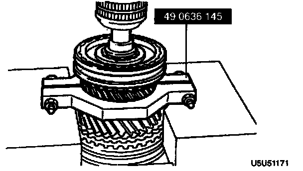 - Remove the mainshaft rear bearing by using the SSTs.