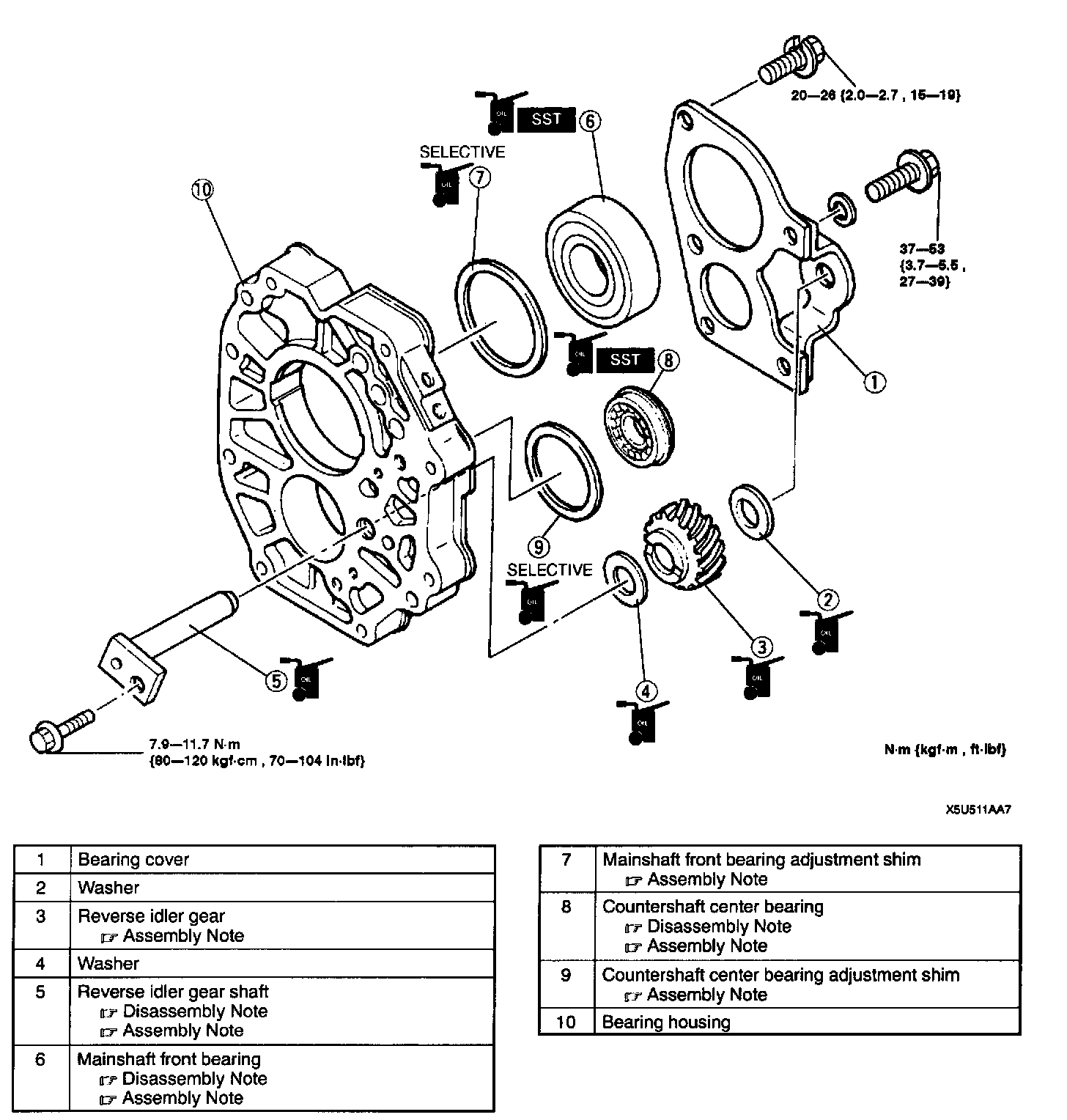 Mainshaft Front Bearing Adjustment Shim Assembly Note