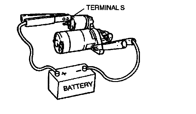 1. Verify that the drive pinion is pulled out with battery positive voltage connected to terminal S and the starter body grounded.
