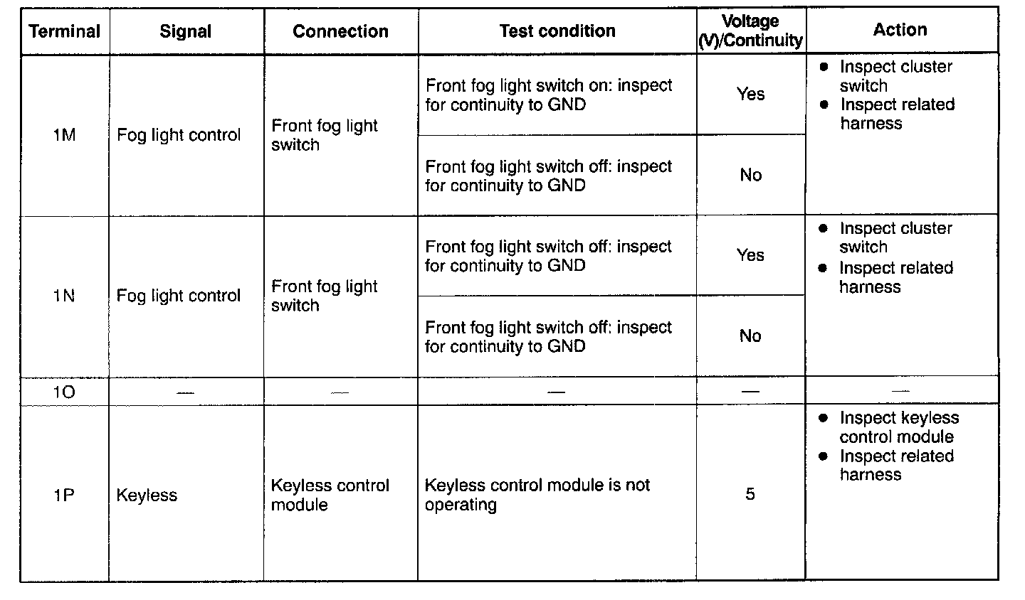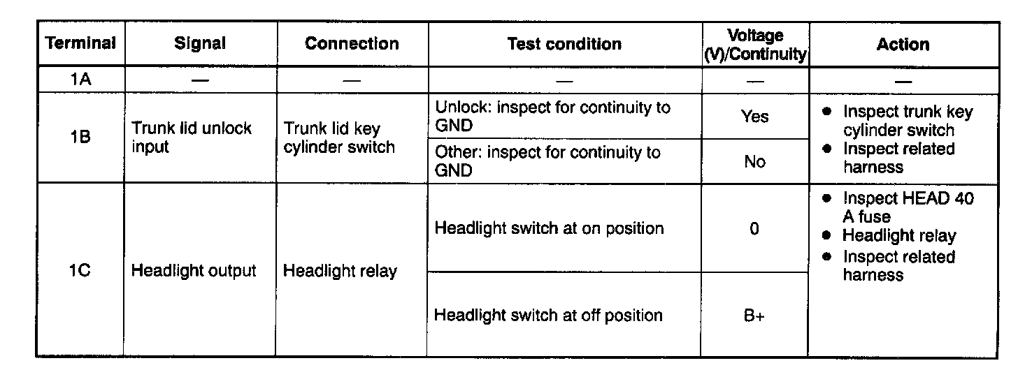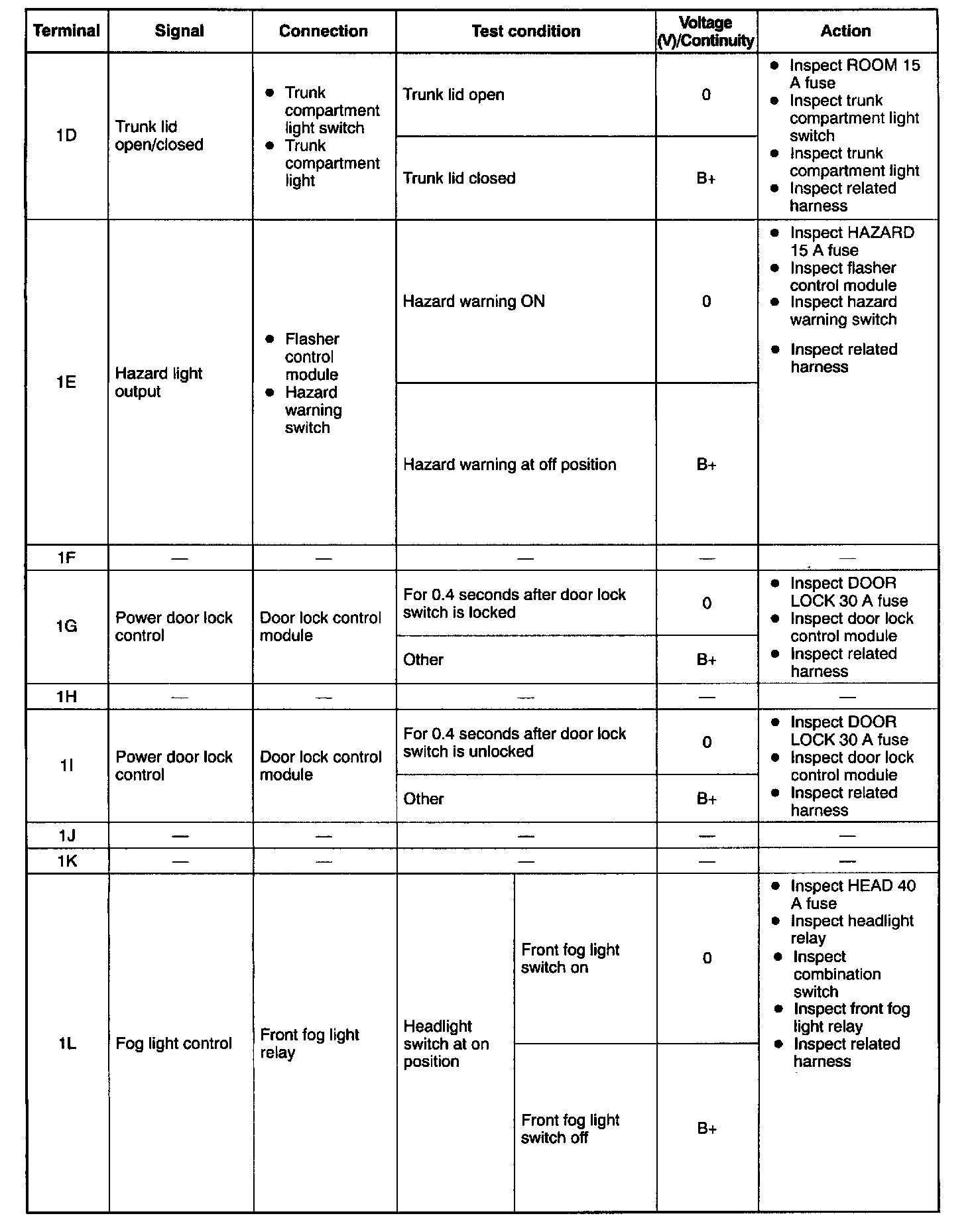 Terminal Voltage Table (Reference) - Pinouts (1D - 1L):