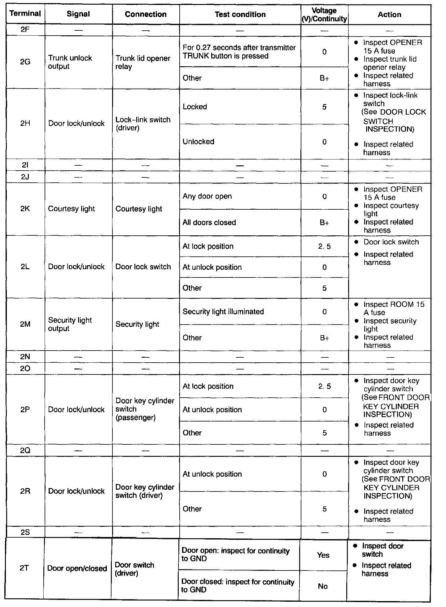 Terminal Voltage Table (Reference) - Pinouts (2F - 2T):