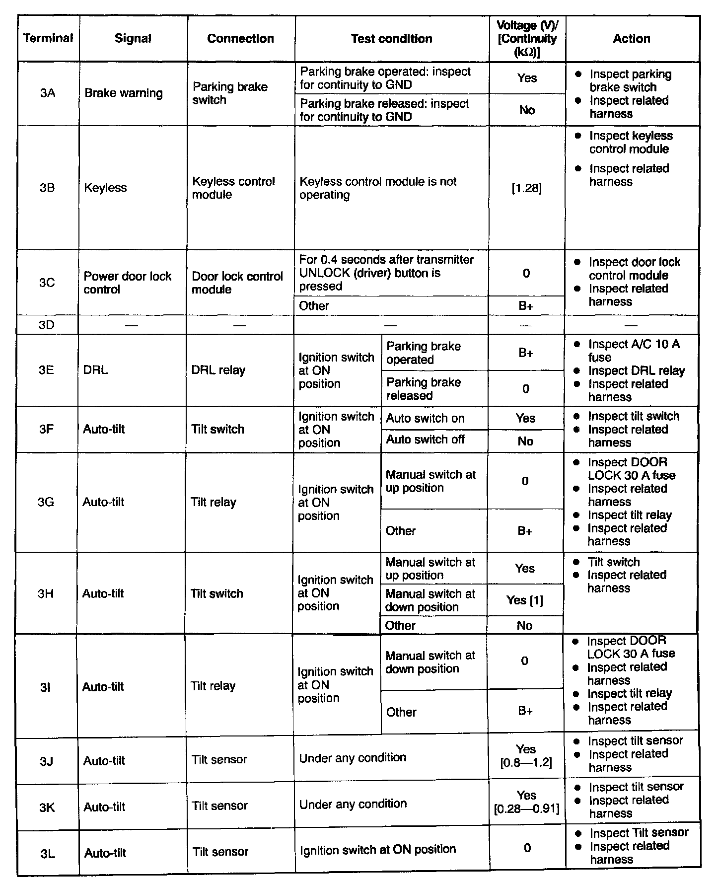 Terminal Voltage Table (Reference) - Pinouts (3A - 3L):