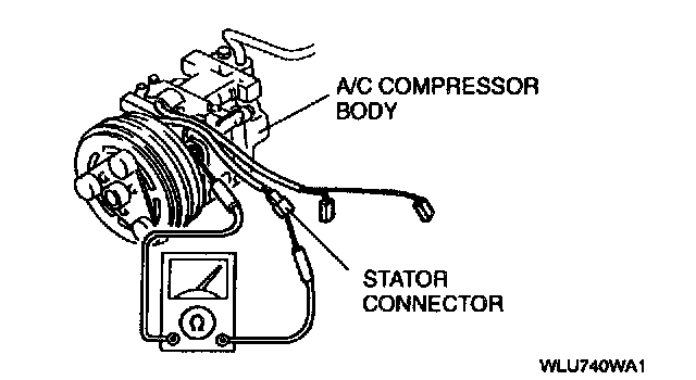 3. Verify that there is continuity between the stator connector (male) and A/C compressor body.