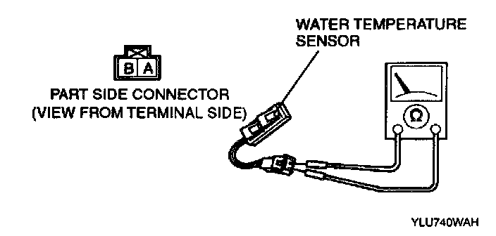 3. Measure the resistance between terminals A and B of the water temperature sensor connector (male).