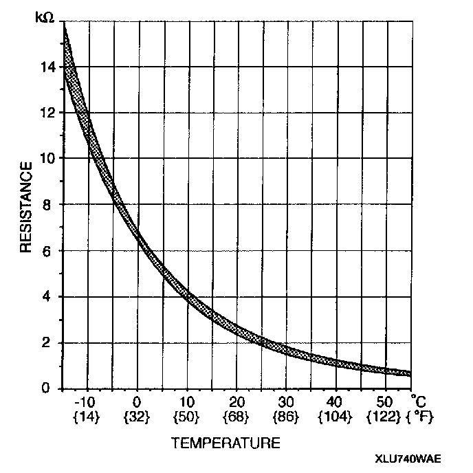 - If the resistance is not in the shaded zone indicated in the graph, replace the evaporator temperature sensor.
