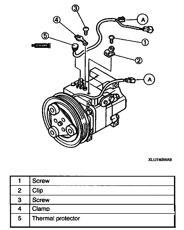 After removing the thermal protector, completely remove the silicone adhering to the A/C compressor side.