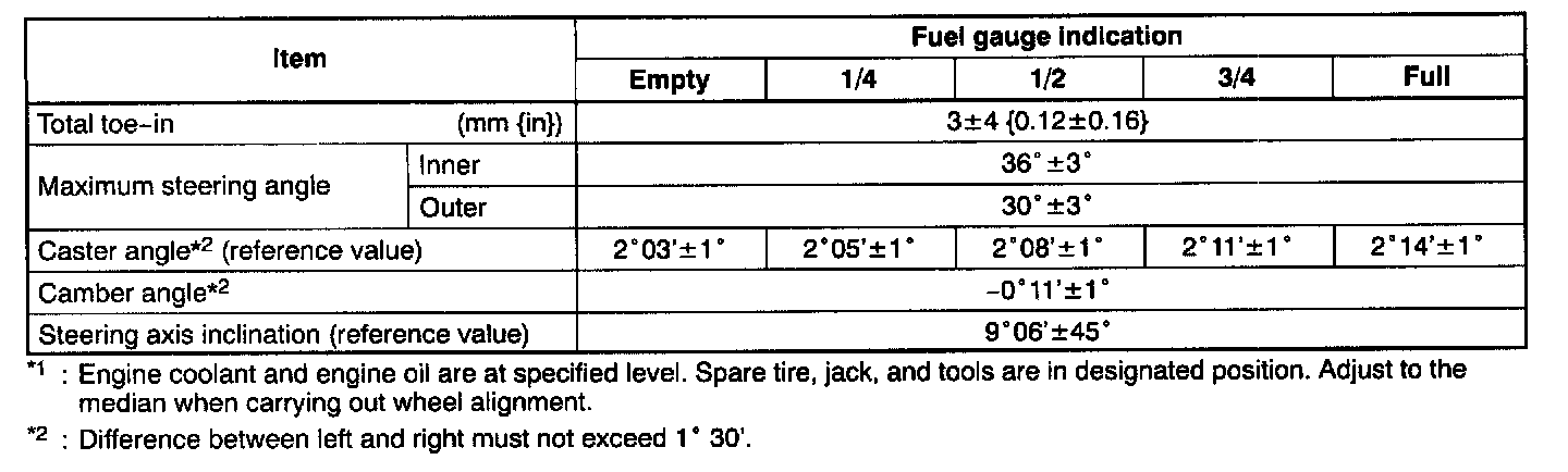 Note Turning the adjusting cam bolt one graduation changes the camber about 16 minutes.