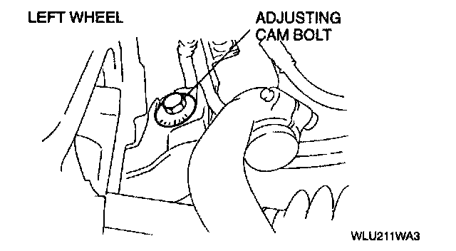 2. Turn the adjusting cam bolt to provide the correct camber angle as indicated.