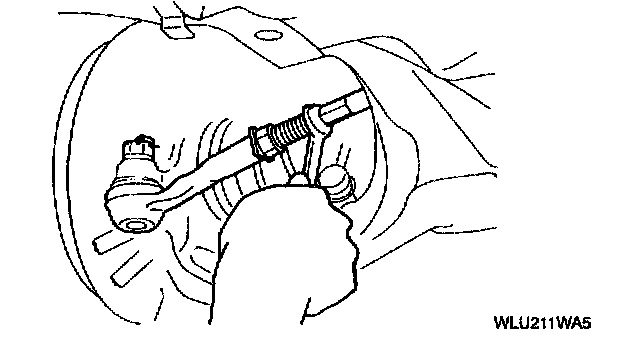 3. Loosen the left and right tie rod locknuts and turn the tie rods equally. Both tie rods are right threaded, so turning the right tie rod toward the front of the vehicle and the left toward the rear increases toe-in.