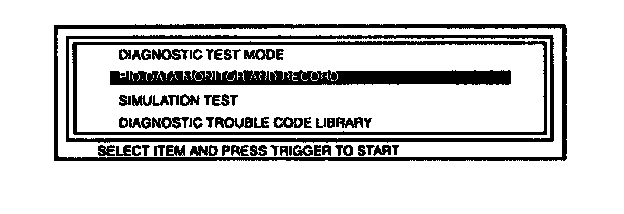 7. Select the PID/DATA MONITOR AND RECORD function of the NGS.