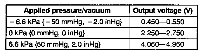 - Fuel tank pressure sensor terminal C voltage: Constant voltage (4.5 - 5.5 V)