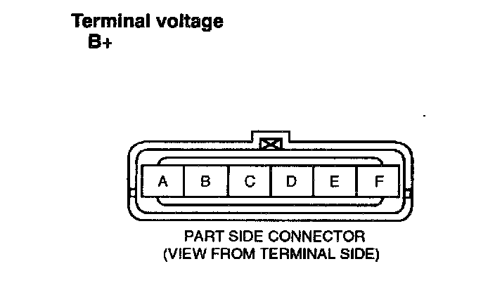 4. Measure the terminal voltage between the distributor connector (6-pin) terminal B and body ground using a voltmeter.