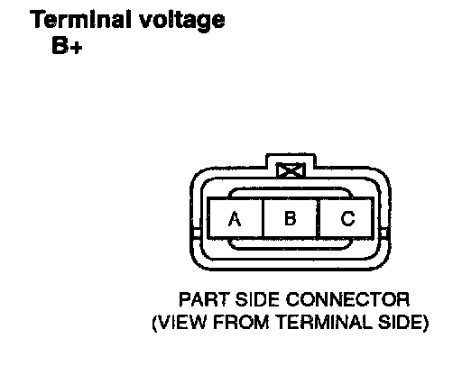 6. Measure the terminal voltage between the distributor connector (3-pin) terminal A and body ground using a voltmeter.