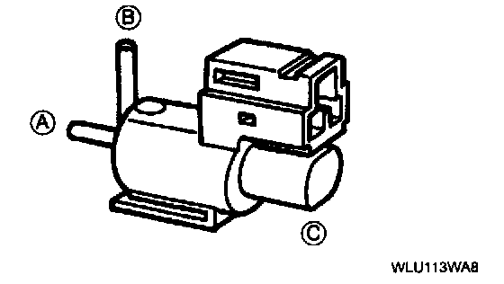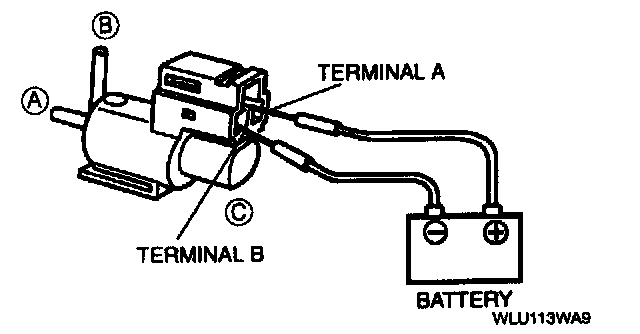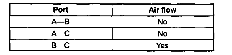 3. Apply battery positive voltage to terminal A and ground terminal B of the VRIS solenoid valves No.1 and No. 2. Verify that air flows as shown.