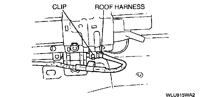 1. If a solar ventilation system is equipped, disconnect the roof harness and remove the clip from the bracket.